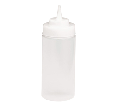 WideMouth™ Squeeze Bottle, 8 oz., 53mm opening, natural cone tip, dishwasher safe, soft polyethylene, clear, Made in USA, NSF