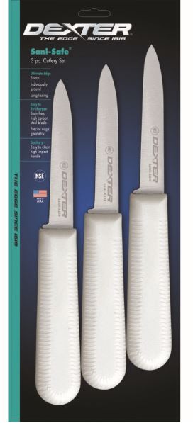 Sani-Safe® (15383) Cook’s Style Paring Knife, 3-1/4″, stain-free, high-carbon steel, non-slip, textured, polypropylene white handle, Perfect Cutlery Packaging, NSF Certified, Made in USA (3 each per pack)